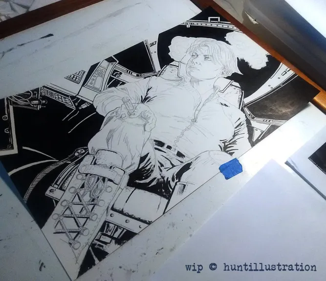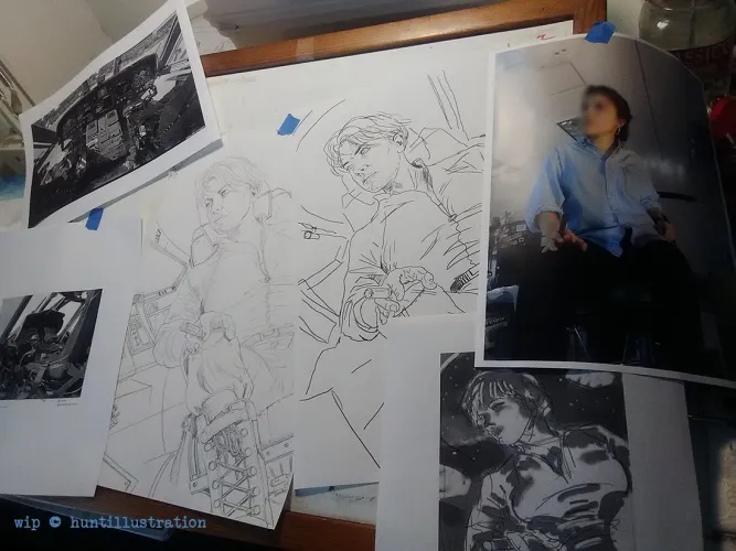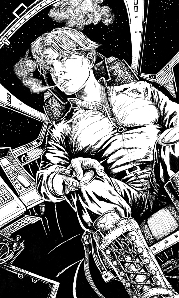 Jon Hunt‘s brilliant illustrations for a free downloadable PDF excerpt called “Salvage Run” from my novel, 1% Free.